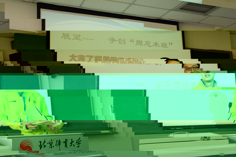 3月13日上午,體育傳媒系2012級2班在教學樓307教室開展了“學雷鋒活動月”主題班會活動。這一活動适逢體育傳媒系創建“周恩來班”的過程中,因此班會的開始由班委們向同學們介紹了周恩來總理的偉大精神和“周恩來班”的相關情況。